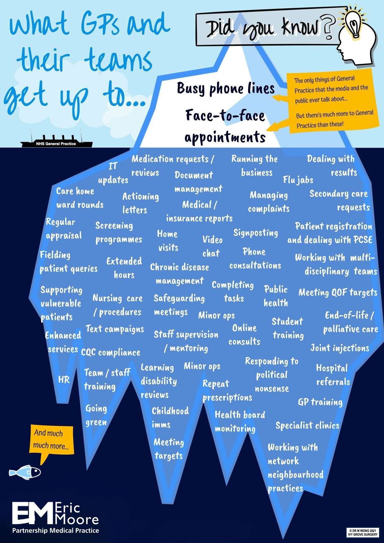 So next time you visit or call the surgery, it’s worth remembering that what you see – the phone lines, the waiting room, and your appointment is only a small part of what your GP team does each day. Beneath the surface, there’s a dedicated team of people working hard to make sure you receive the best possible care, often in ways you might never see.
