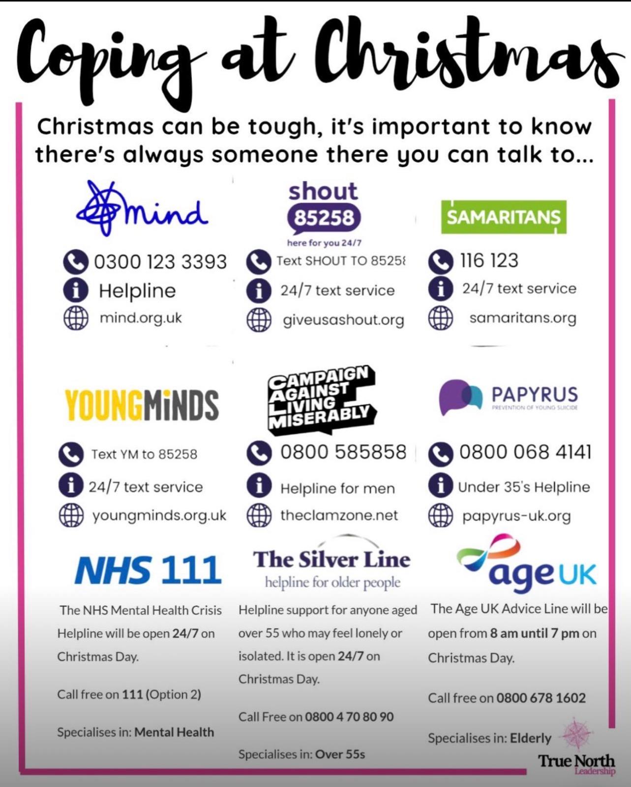 This page highlights sources of support for anyone who may be finding Christmas challenging and needs a little extra help. If you know someone who might benefit, please feel free to share this information with them. Support is available, and no one has to face this time alone.